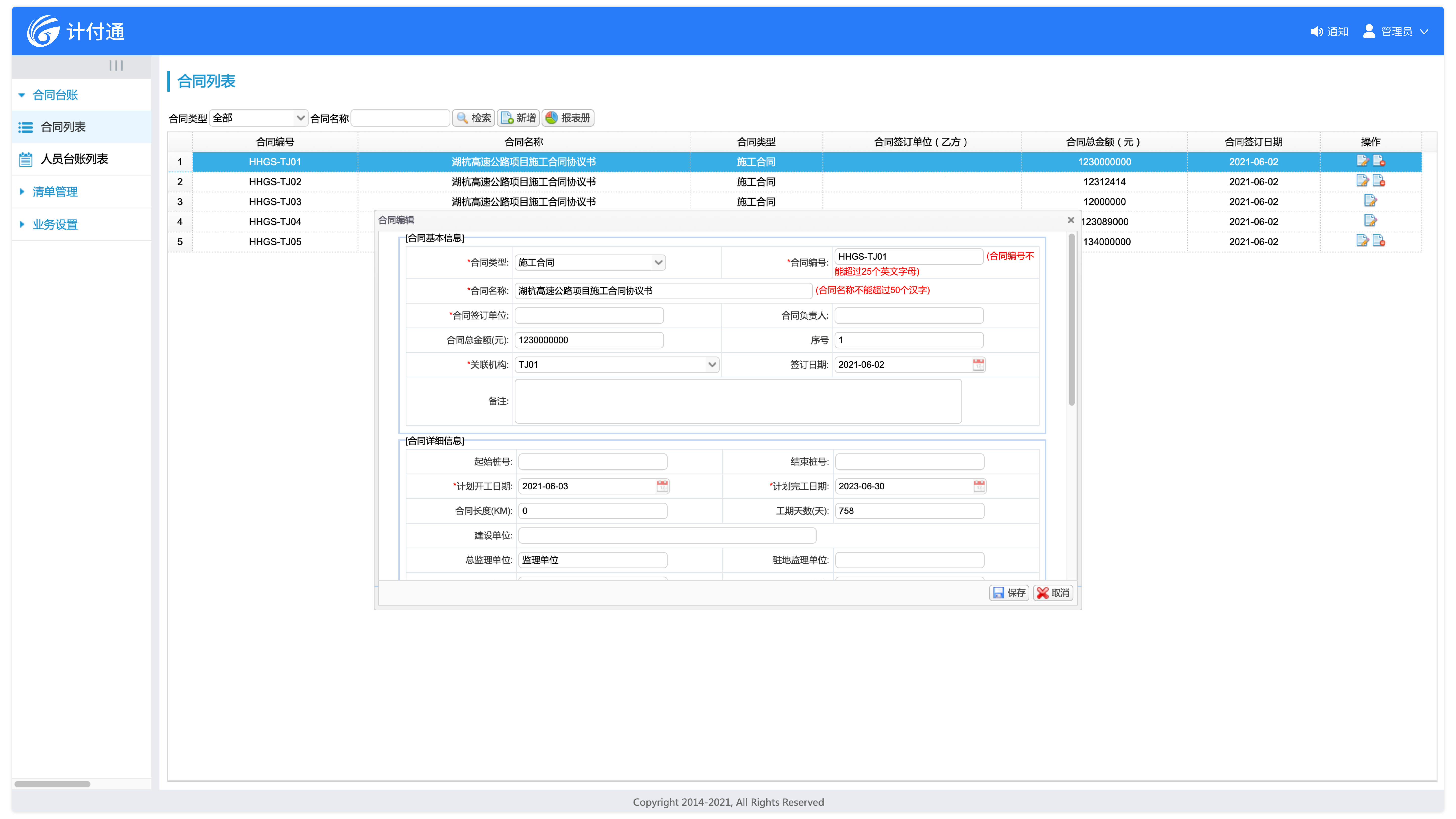 合同管理基本信息詳盡,約束條款中內(nèi)置各類計量依據(jù),是整個計量支付業(yè)務的源頭。