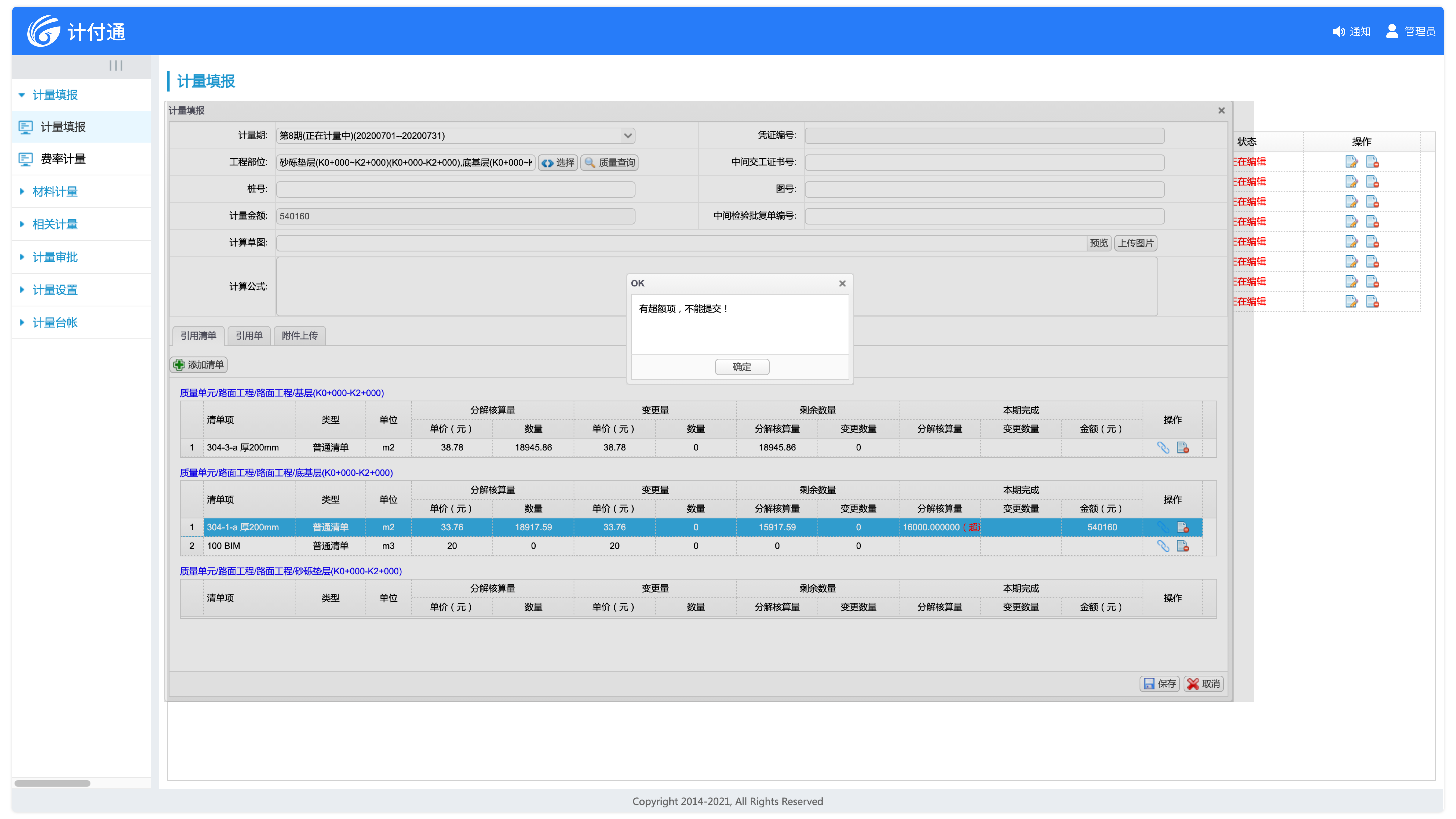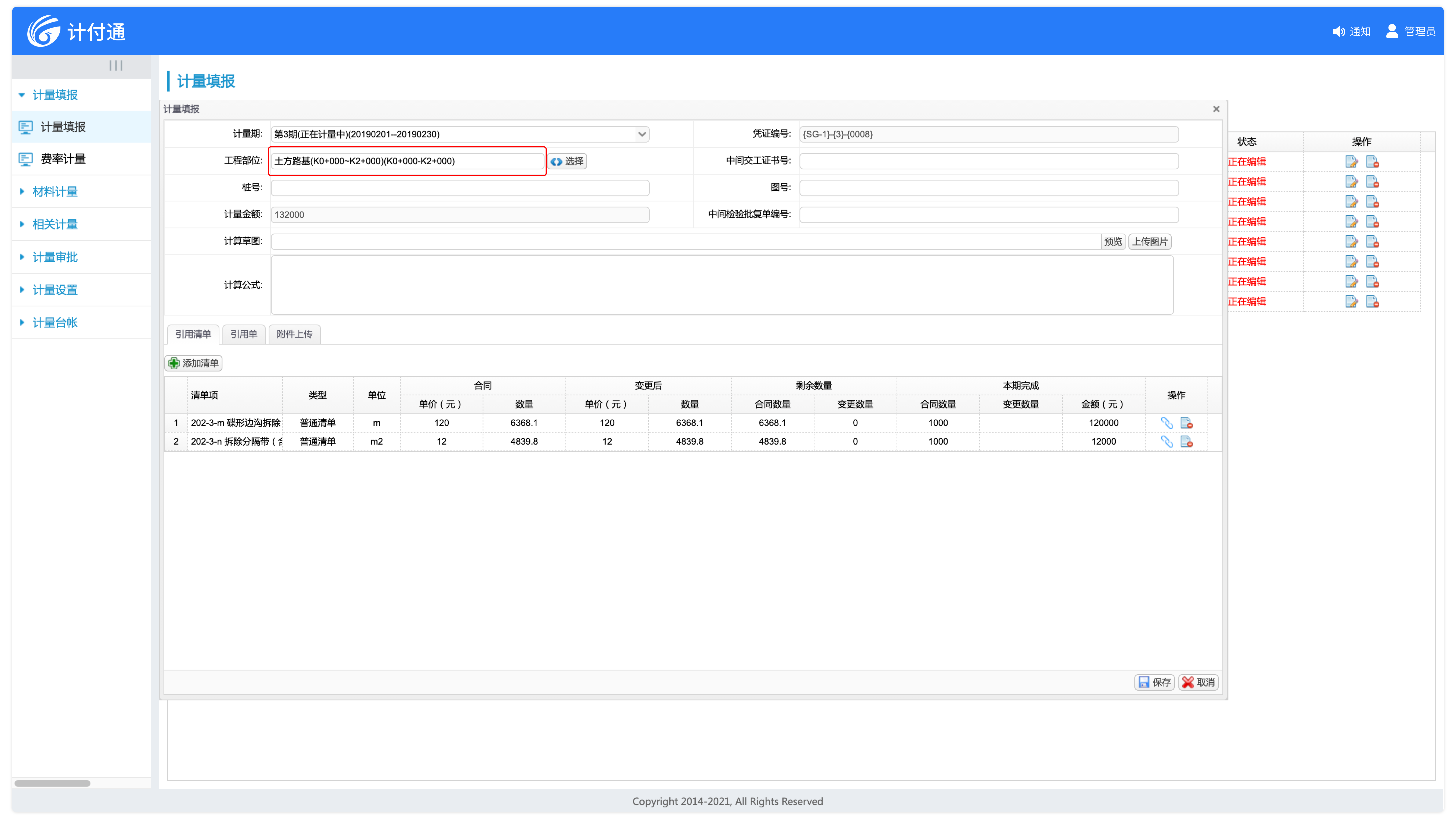 適應多種計量模式,既支持按照合同清單總量進行計量,又能按照工程部位進行計量。