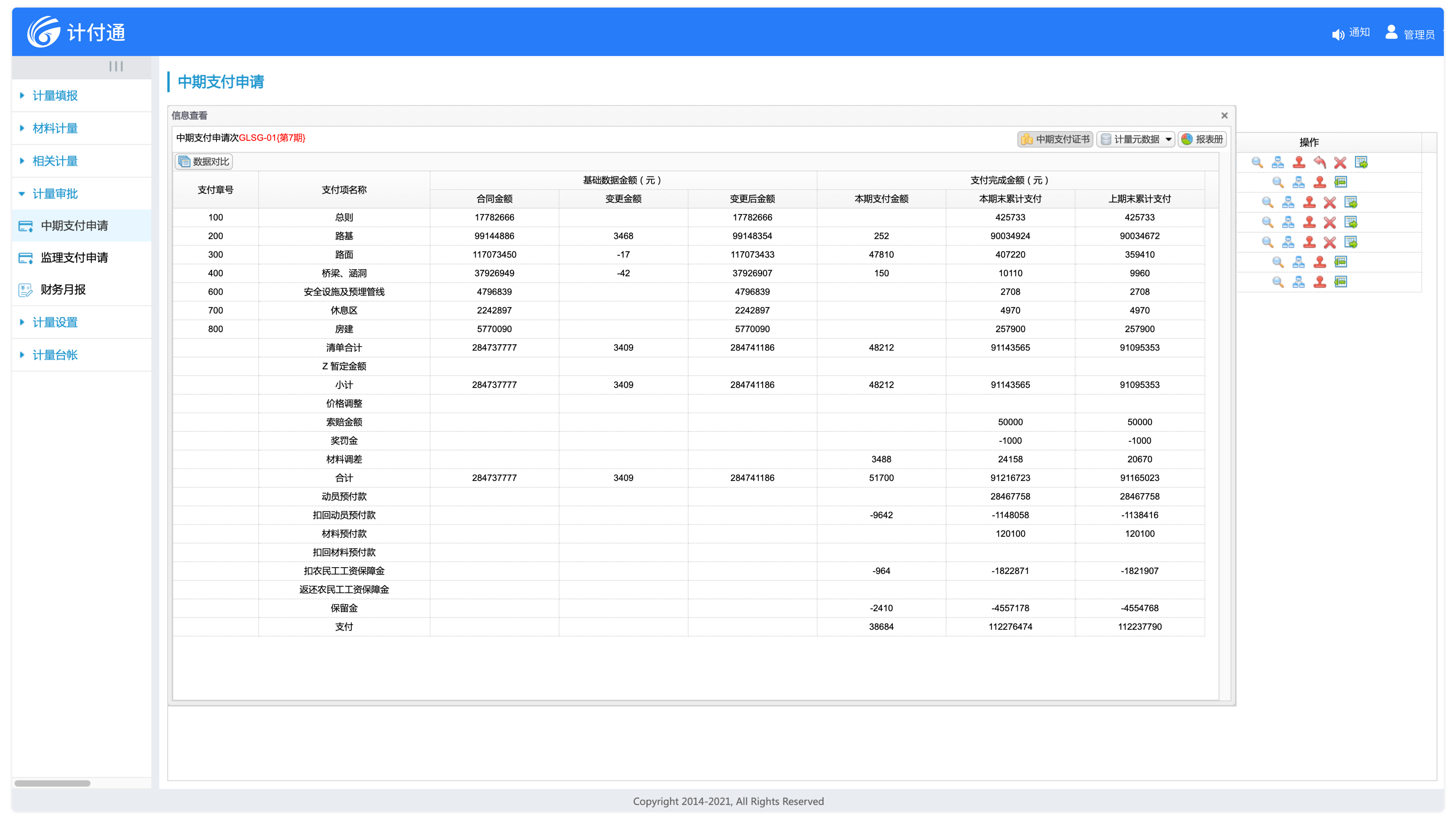 程留痕、報表完整、超計預警等,實現(xiàn)了計量支付業(yè)務的標準化和規(guī)范化。
