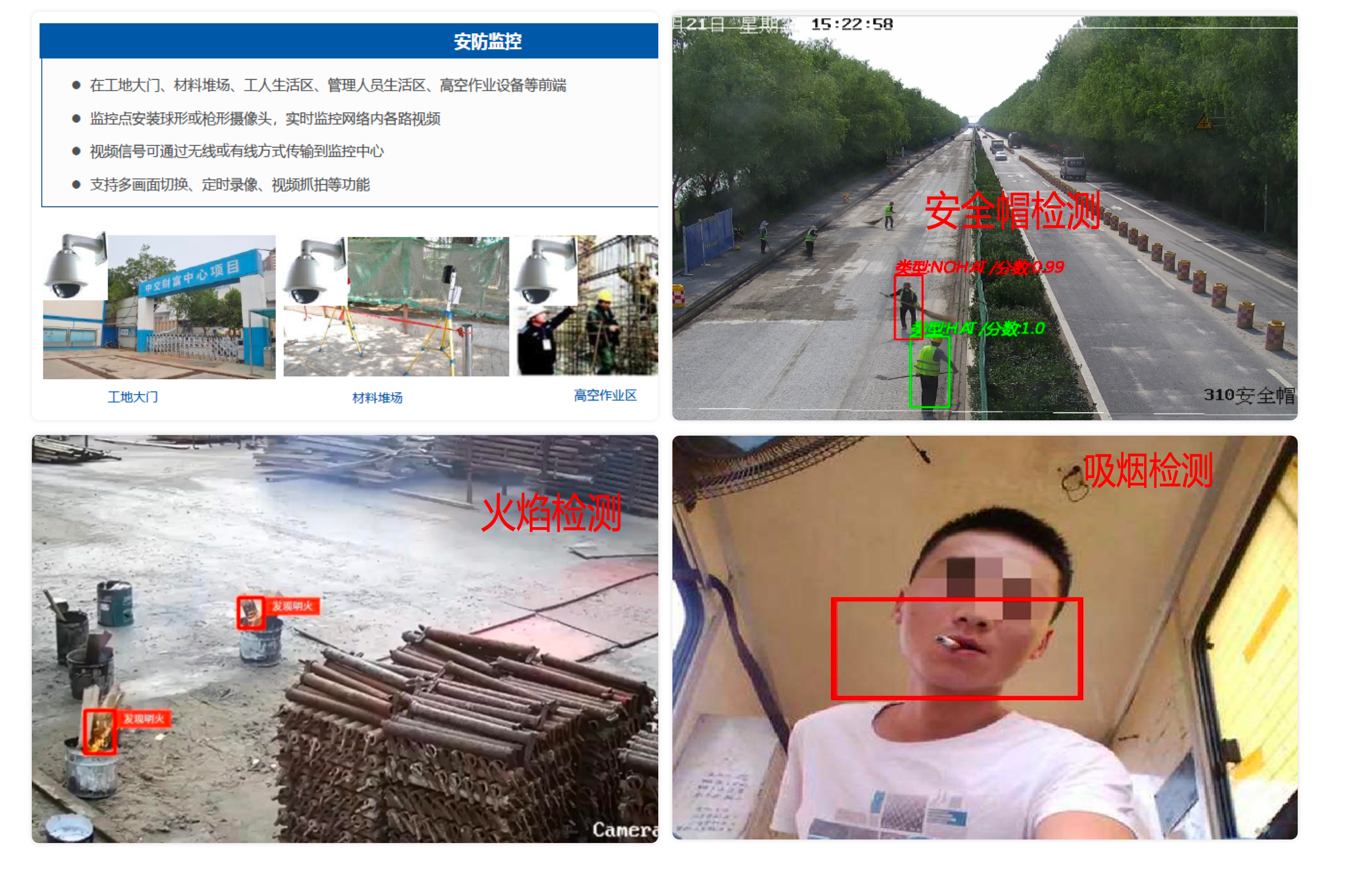 智能視頻監(jiān)控設備,利用邊緣算法實時對施工現(xiàn)場、人員行為、設備運行狀態(tài)、施工環(huán)境等進行監(jiān)控和預警,及時發(fā)現(xiàn)安