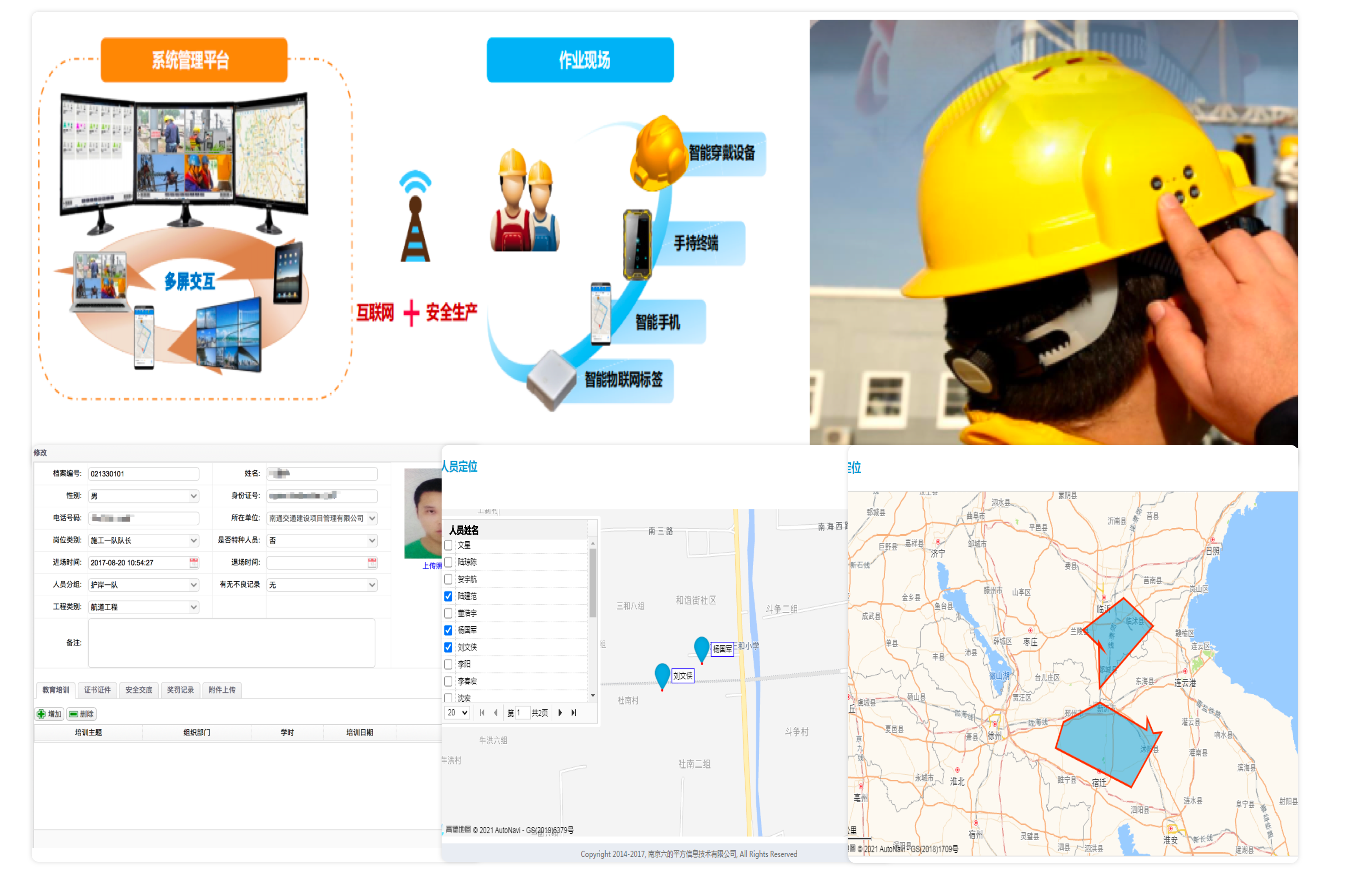通過智能安全帽、考勤機硬件設備,結(jié)合PC端人員數(shù)據(jù)管理分析,實現(xiàn)項目人員實名制信息、考勤、工資、保險、定位、軌跡