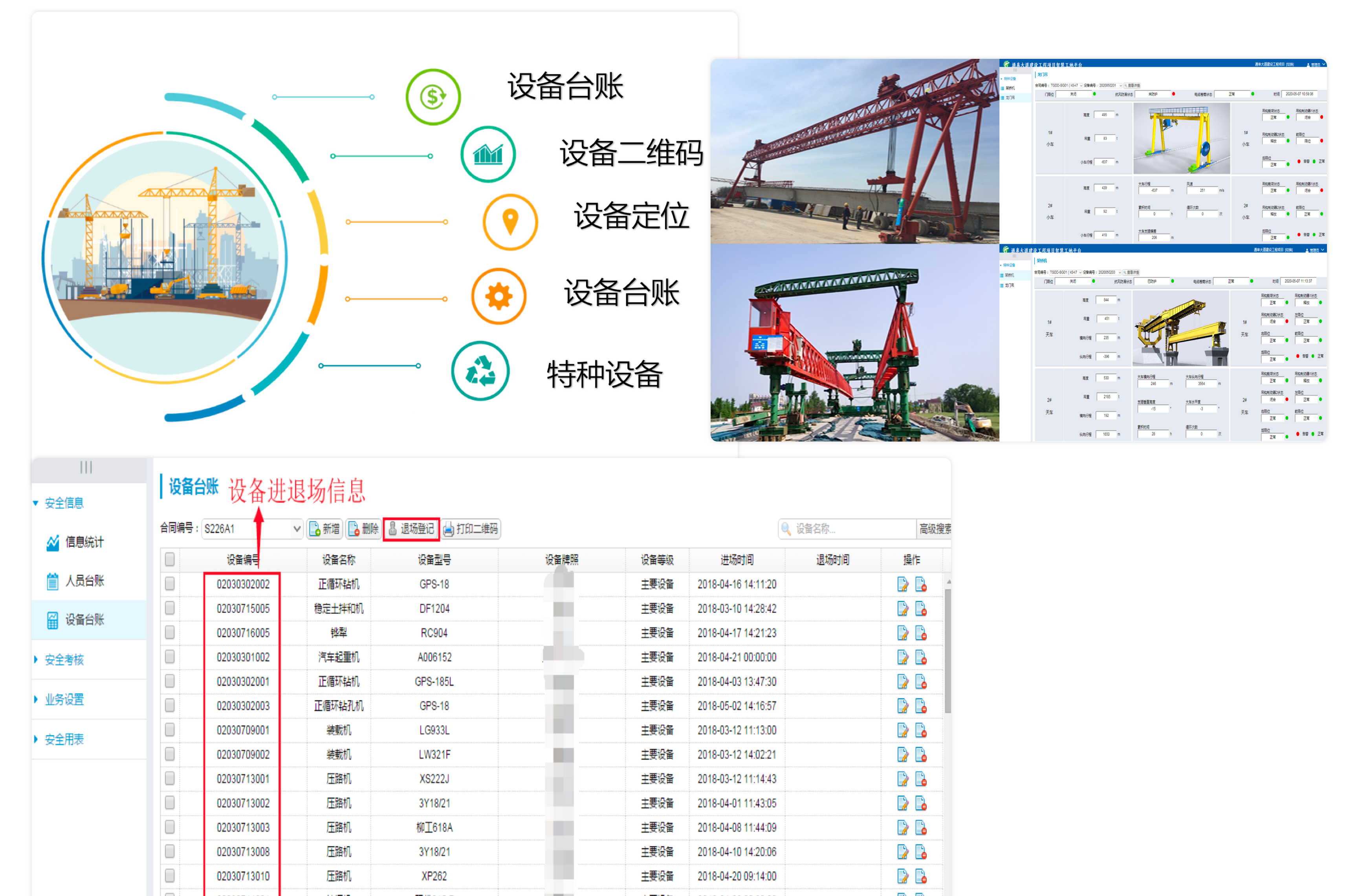 在項目施工過程中會有大量設備的使用,針對施工設備進行進出場登記,能有效的了解和掌握項目設備投入情況,同時對特種